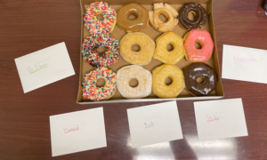 Today I had observation, but before I headed in, I got the entire school psych group donuts and brought them my cards I had made for them, thanking them for letting me be a part of their clinic. I was so happy because one of the graduate students, who I hadn’t seen in a while was there at the clinic and it was so nice to say goodbye to them one last time. Every single one of the graduate students were such great people and I am definitely going to miss seeing their bright faces every day! We started our day off right, for sure.