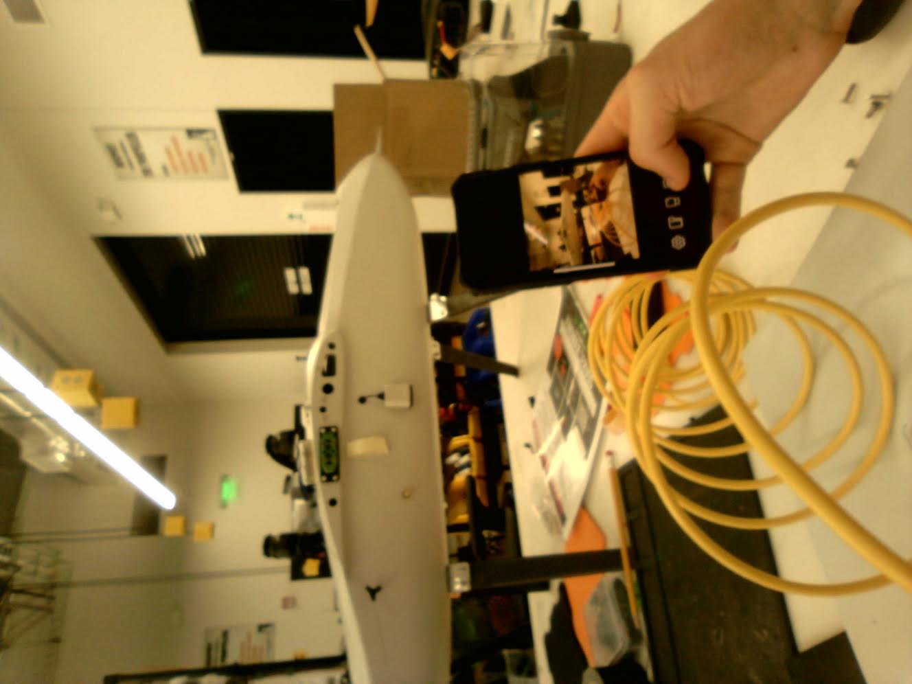 Taking a photo of me taking a photo after inspecting wiring on a UAV (Body of UAV in the background) with a endoscopic camera.