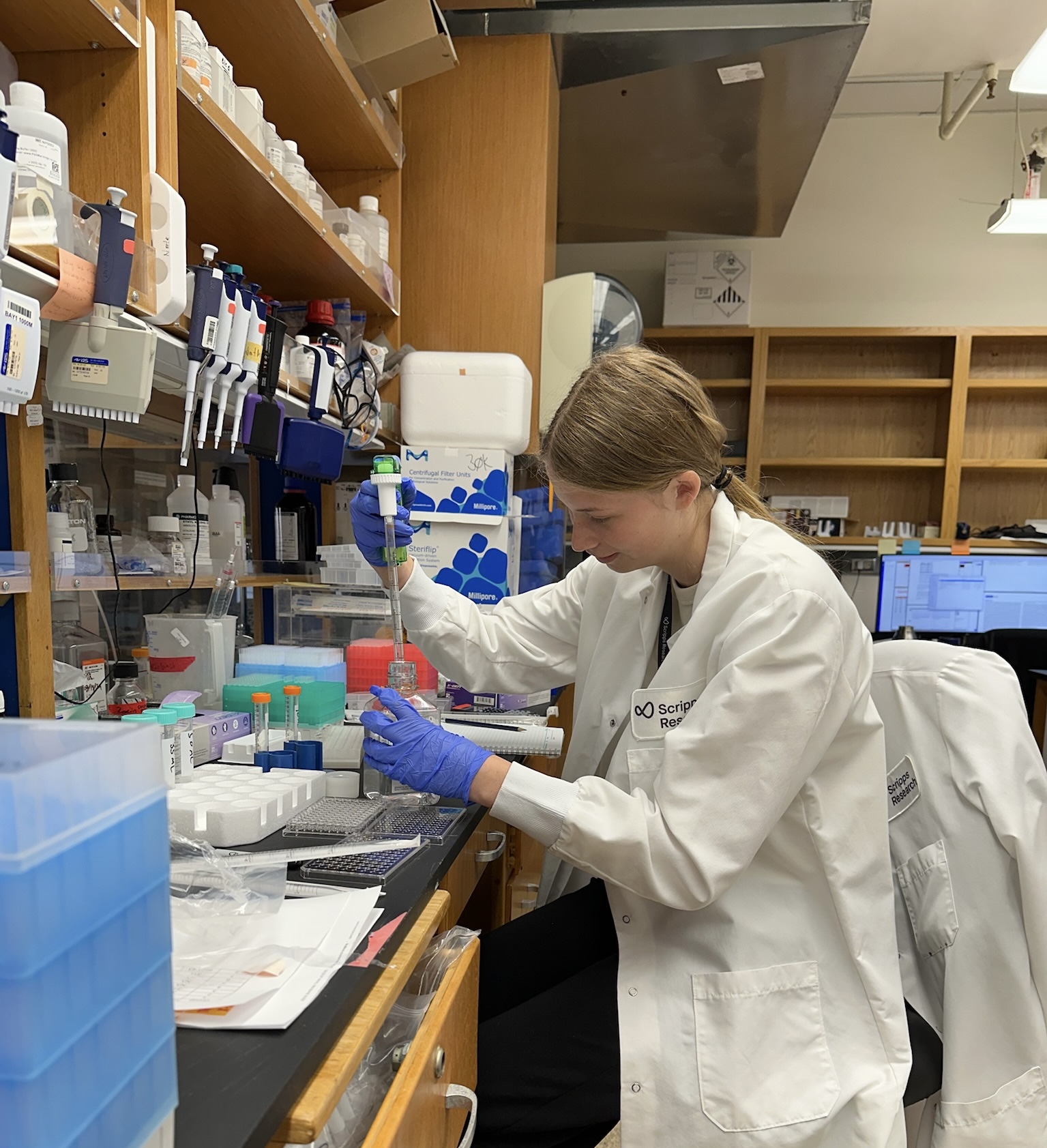 Hi guys!! I’m Shiloh and for the past week (one of six!) I’ve been an intern in the Briney Lab at Scripps Research Institute in San Diego, California. Bit of context on that: the Briney Lab operates within the Immunology and Microbiology department at Scripps as a subsection of the Burton Laboratory. Its members work to analyze human immune responses to infectious diseases like HIV, Lassa, Ebola, and SARS-CoV-2 in order to identify and develop antibody proteins capable of effectively targeting these pathogens in a process known as “reverse vaccinology”. The overarching focus of the lab is to engineer a vaccine for the HIV virus specifically, as there is no current vaccine or definitive treatment. For the next five weeks I’ll hopefully be able to contribute to this endeavor under the guidance of grad student Nathan Liendo and doctoral candidate Sean Callaghan. As Sean will not be in-lab these first two weeks the majority of my work currently has been done with Nathan Liendo and Nathan Buetler: the official mentor of my lab partner Azari. Although we technically work in separate labs in name, the interlinked nature of the two group’s studies means we share a lab space and many of the same techniques. As Azari is also under a dual mentorship with one half absent, the present halves (the Nates) have taken to working with the two of us as a pair, taking turns teaching us their different approaches and focuses. Azari and I jokingly say they’re co-parenting us.