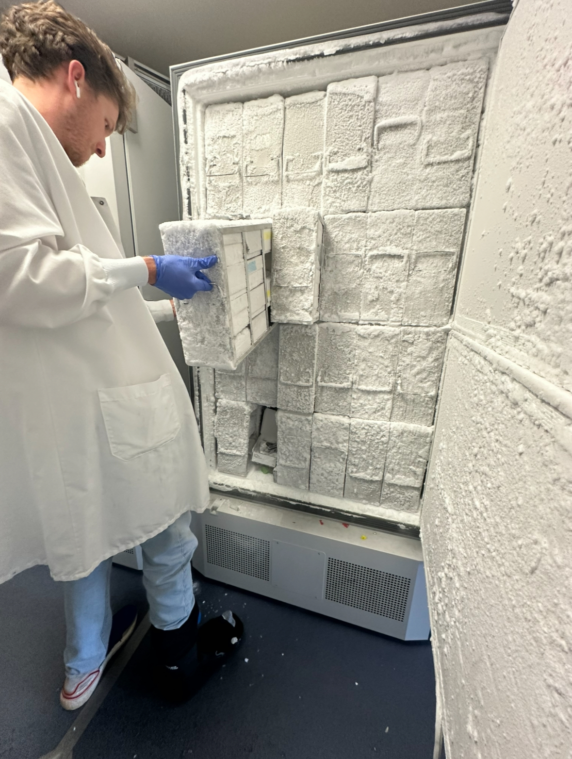 Nate B. in the freezer (-81C) looking for his samples