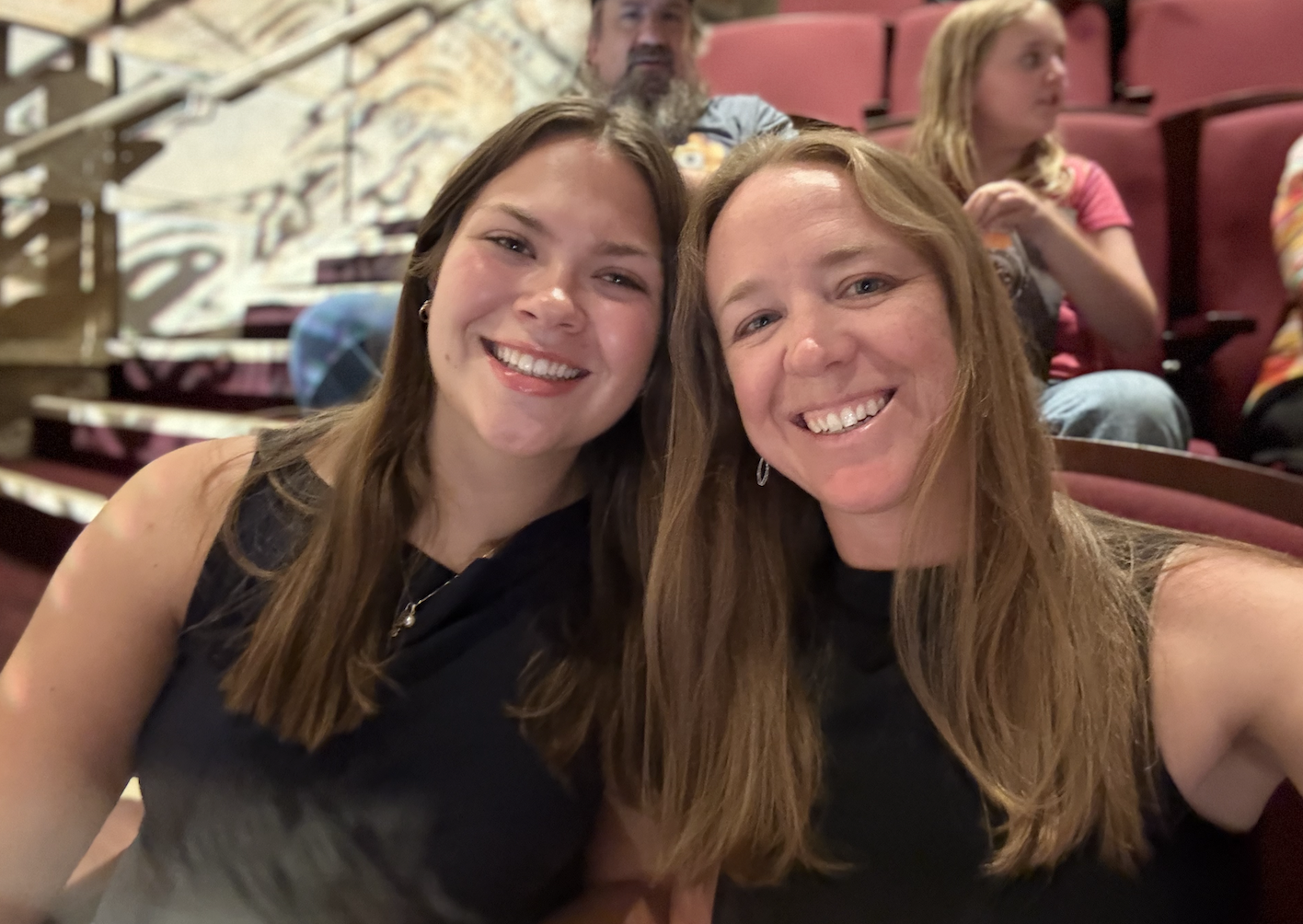 Outside of the lab this week, I did a lot of fun activities with my half sister and her husband, who I am staying with. On Sunday, we went to the Denver Chalk Festival, which was lots of fun and a lot more interesting than I thought it would be. On Thursday, it was my nephew’s birthday, so we had a Bluey-themed party and barbecue. My sister and I also got to go to the Denver Performing Arts Center to watch a Broadway musical because her friend had extra tickets. Finally, on Saturday, we went to see the new Wes Anderson Movie, The Phonicien Scheme, at the Alamo theater. At the Alamo, you order dinner before the movie and then eat while watching.