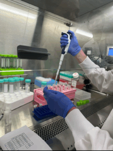 We worked with Sean on some of the earlier stages of plasmid preparation as well as with Ben Nemoz: Azari’s mentor who arrived this week. He gave us a full secondary run down on PCR (polymerase chain reactions) while Sean let us work with him on some Gibson Assembly, SDM (site-directed Mutagenesis), PCR, and eventually transfection of the plasmids we produced. A lot of the work Sean does is in silico and his wet lab work reflects is performed to validate the models he builds through the Alphafold pipeline. The 3D models created by Alphafold allows us to examine the exact amino acid chain link that comes into contact with viral trimers during antibody/epitope interactions. The overarching idea is to predict germline mutations that will induct effective antibodies and then guide this process towards the creation of the structures that favor binding. We want to guide the affinity maturation of b-cells so that they begin to naturally create virus targeting antibodies on their own; this way the b-cells can be ‘taught’ to adapt alongside viral mutations and remain effective. Alphafold helps us to develop immunogens that will activate b-cells suitable for this particular evolutionary pathway as well as discover the antibody sequences we want to eventually develop. The coding program can be finnicky though since it’s taught on databases full of currently registered antibodies. This causes it to create a lot of antibody protein structures that fold nicely into a ‘happy protein’ but don’t work effectively as a ‘happy antibody’ should. To lower the effect of this inaccuracy in our studies we can cross reference the sequences produced by antibodies alone versus the sequences created when we view an antibody-antigen complex and essentially “cancel out” the amino acids that make up the chains of the happy proteins and single out the amino acids that are actually changing the protein structure to promote more effective binding. All of this remains purely theoretical in it’s practicality however, until it’s results can be justified through wet lab antibody production and testing.