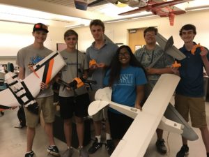 The plane on the far left was the one that all of us built in that week to hold the Radiosonde. We have yet to test it. The aircraft in the middle was one that the interns made the previous week which we were not here for. Then the aircraft in the back is one that we are going to use to capture the dolphin DNA to bring back to a lab.