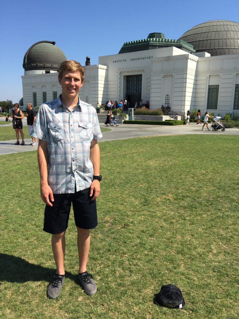 At lunchtime, Greg and I left DD and headed towards Hollywood for a fun evening in the city! First, we drove to Griffith Park for, yes, another La La Land filming location: the Griffith Observatory. It was a really cool place to visit, for both its legitimate scientific value, as well as its filming history in Rebel Without A Cause and La La Land. After that, we visited one of Greg’s friends, who works for  Comcast/NBC-Universal. His friend showed us around his work for a bit, then we went on the Universal backlot! We got to take a golf-cart and were able to drive all around the property!