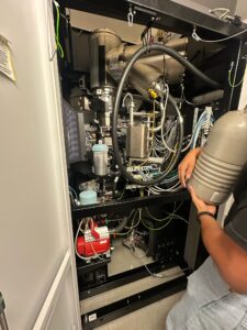 Other things done in the lab this week include running DNA and Protein gels with Yenni and Nate B., attending a Briney Lab meeting with Sean, and examining the pictures taken by a Cryo-Electron Microscope with Liendo. The DNA gels were fun and easy, we were able to examine them under UV light to see our single double and uncut results which checked out. We also observed the layering of a Western Blot with a stack of of PVDF membrane and transfer papers soaked in buffer to extract the proteins from Yenni’s gel. Most of the lab meeting was on computational analysis models and a lot of it flew over our heads (we were forewarned of this being a likely possibility by Sean before the meeting). We still got to meet all the lab members for Briney, who were all super nice, and some of their projects were super cool; one was the training of an AI model to predict mutations from the germline and was actually pretty successful. Liendo’s work in the Ward Lab is CRAZY. Most research institutions are lucky to have a single Cryo-Electron Microscope. Scripps has four.