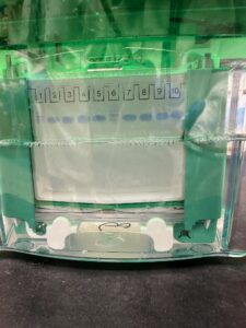 It’s important to note that Expi 293 cells require feeding 24 hours after transfection. Their meal of choice is .3ml glucose and .3ml of VPA. Back in the incubator and they’re happy as can be. After we transfected we also ran a gel with our leftover DNA but added the wrong dye for the ladder so our results were inconclusive. We kind of screwed up this gel entirely to be honest with you; Yenni asked us to run a pair of his plasmids through our gel and we loaded the completely wrong ones (Yenni we’re sorry!!!!!!). Thankfully Yenni is super forgiving and kind; he wasn’t too upset with us for our mistake.