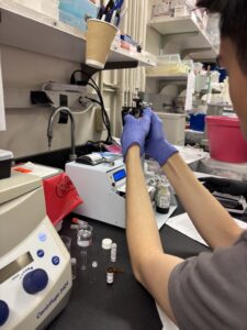 I got to shadow Joseph as he was doing one of many clearing washes in the protocol. A lot of the procedure calls for washing and waiting, similar to IHC, but instead of washing the slices in PBS, Joseph used a clearing reagent called DCM to make the whole brain clearer. After that, I helped him label some tubes, and it was honestly a great time! I had a lot of fun learning from Joseph, not only because I got to learn about something I didn’t know about, but also because I got to know Joseph a little better! Although I’ve seen Joseph around Skaggs and sometimes MTF, I haven’t gotten the opportunity to actually learn about what he does or who he was honestly, so being able to get the opportunity to do both was awesome.