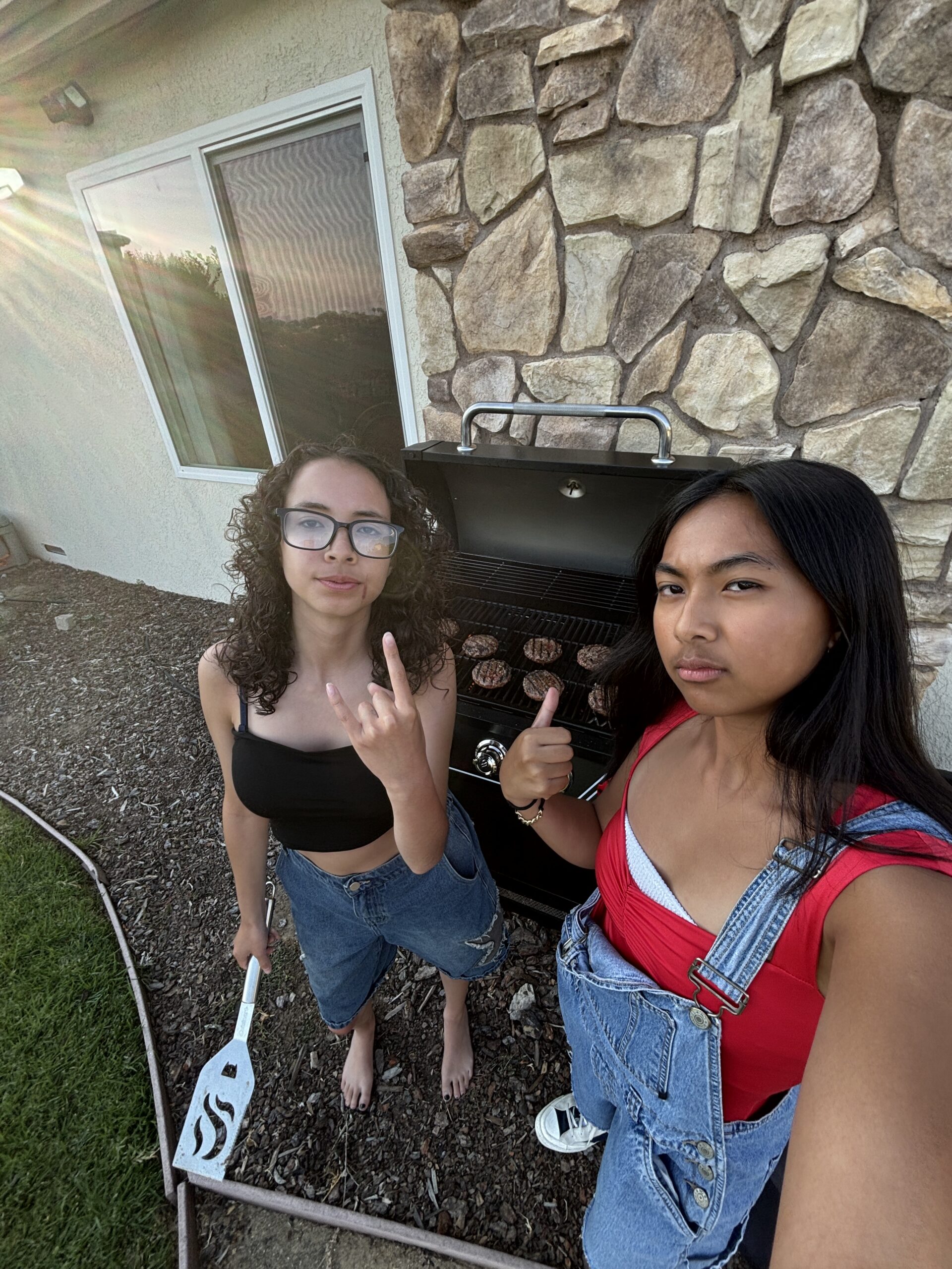 Azari and I channeling our inner dads grilling the burgers!