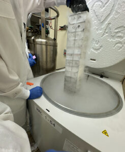 Nate B. also had us start a new kind of cell culture on Monday. There’s two kinds: adherent and suspended. Our Expi293 suspended cells are used for protein expression while new adherent cells for different assays (like neutralization assays). First, we made our media. It’s made up of FBS (fetal bovine serum, helps the cells stick), pen/strep, and L-glutamine. While we warmed the media, Nate took us to the basement to get our cancer cells from a huge freezer. My cells were Vero monkey cancer cells which are used for pathogens such as SARS-2, Zika virus, and dengue. Shiloh chose a type of cancer cell used for malaria (she stole them from me). These cancer cells will grow forever as long as the have nutrients, unlike our Expi293 cells. My cells grow a bit slower than Shiloh’s so I didn’t have to split when she did. Splitting is a challenge in itself since theres no machine to tell us how confluent our cells are. We have to estimate when our cells are about 80% confluent and split then. Mine were at about 50% on Thursday so I left them to grow over the weekend. Also, I named my cells ‘A$AP Rocky’ (because my other cells are named Rhianna) and Shiloh named hers ‘Biggie Smalls’ (they were in a tiny flask and she thought it was funny).