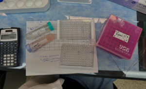 ELISA is a test to measure the amount of antibodies there are in a sample. We tested how many antibodies there were in our transfections from last week. We used samples from day 0, day 1, day 2, day 5, and our standard (control) to see which days produce the most amount of antibodies. Yenni also had us test one of his samples. The ELISA works by attaching a primary to the inside of tiny wells. The well plate is stored overnight and washed in the morning. The wells are then coated and incubated with BSA (bovine serum albumin), a protein used to bind molecules. We then added our antibody and let it sit for about 45 minutes. The well plate is then washed and we added our substrate (the molecule that glows for visualization). I used alkaline phosphatase because it binds the best with my antibody, mAb311. We did a dilution gradient so our first row was our antibody neat. Our dilution factor was 5 so I took 1/5th of the first row and added it to the next row and so on. So, the first row was the most concentrated with our antibody and the last row was the least concentrated. We analyzed our results with a spectrometer and everything looked good. My ELISA definitely needed to be incubated more, it wasn’t as visible as Shiloh’s. It’s not a big deal though, it was expected that mine would be a bit less vibrant.