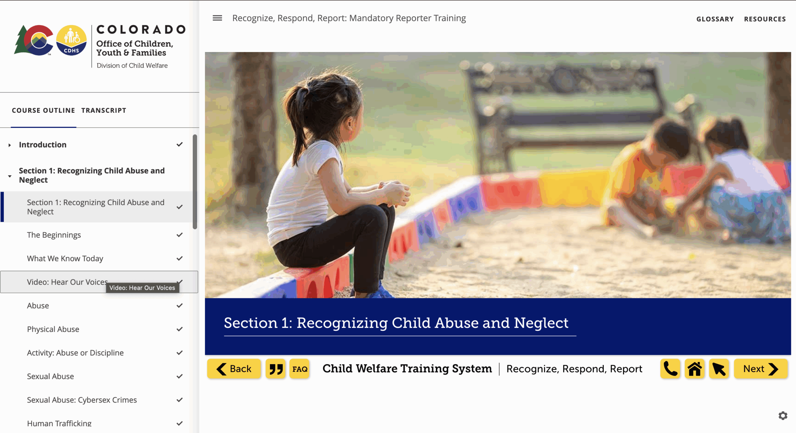I went to the Colorado Office of Children, Youth, and Family Website to do the training for mandatory reporting.