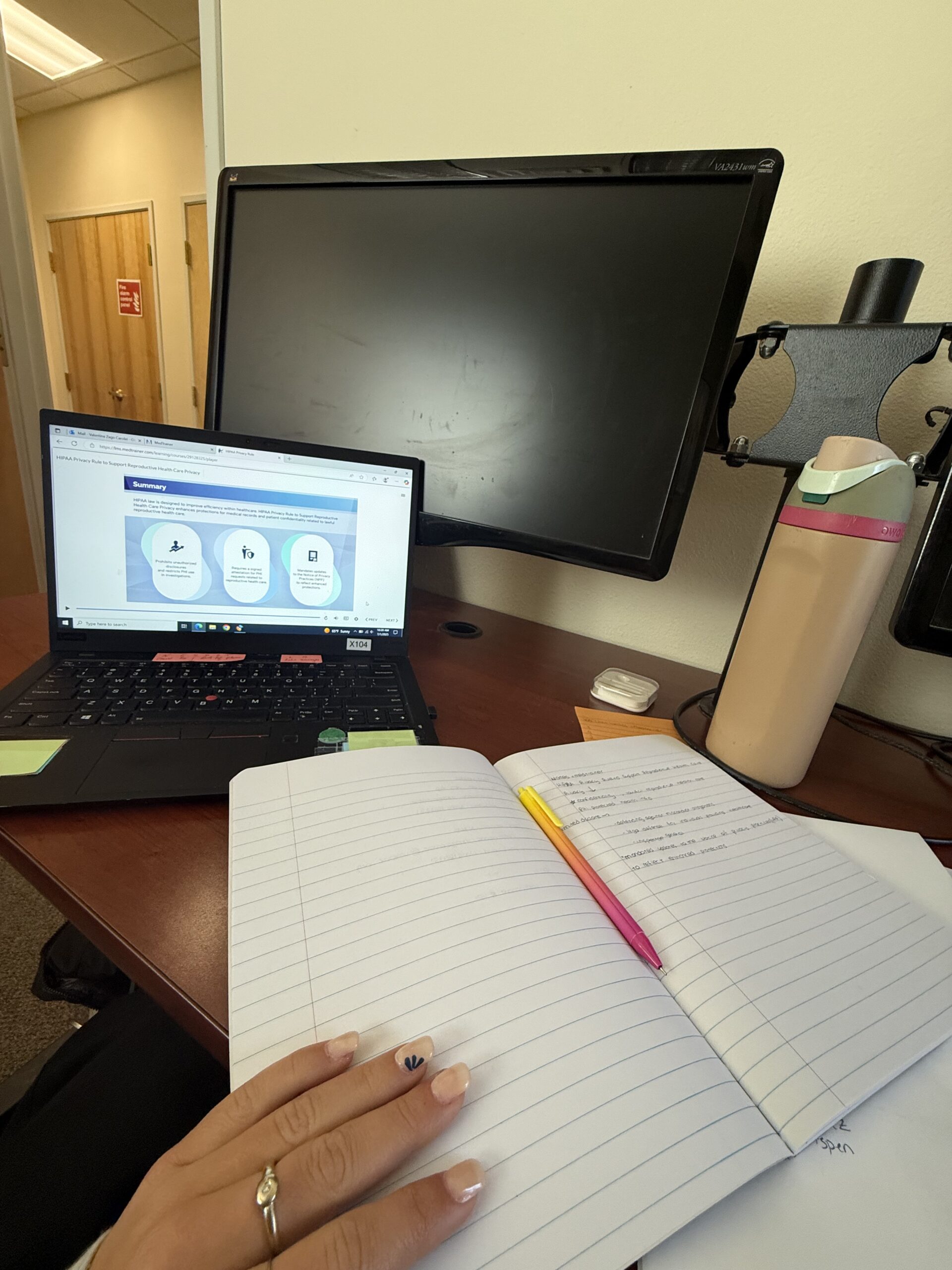 At the start of my internship, I was required to complete a series of online training courses, one of which focused on HIPAA (Health Insurance Portability and Accountability Act). Through this training, I became certified in HIPAA compliance, which means I learned how to properly handle and protect sensitive patient information. The course covered key principles such as patient privacy rights, data security, and the importance of confidentiality in healthcare settings. This training helped me understand the legal and ethical responsibilities that come with working in a medical environment, and it prepared me to interact with patient information in a respectful, professional, and compliant way.