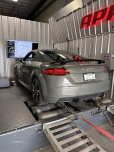 To start the week, we figured out how to enable an Audi to build boost during launch control. This allowed the car to launch more quickly by eliminating turbo lag. After getting the system working, we began calibrating it for smoother boost control throughout the launch and into higher RPMs. To do this, we used the dyno to measure various metrics during testing. This let us modify the ECU (Engine Control Unit), make improvements, and quickly rerun tests.