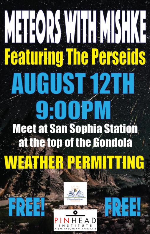 Join Pinhead and the Wilkinson Public Library at the top of the Gondola for this much anticipated performance of the the most popular meteor shower of the year.