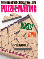 Join Pinhead and the Wilkinson Public Library at the THS STEM Lab for an evening of puzzle making for adults.